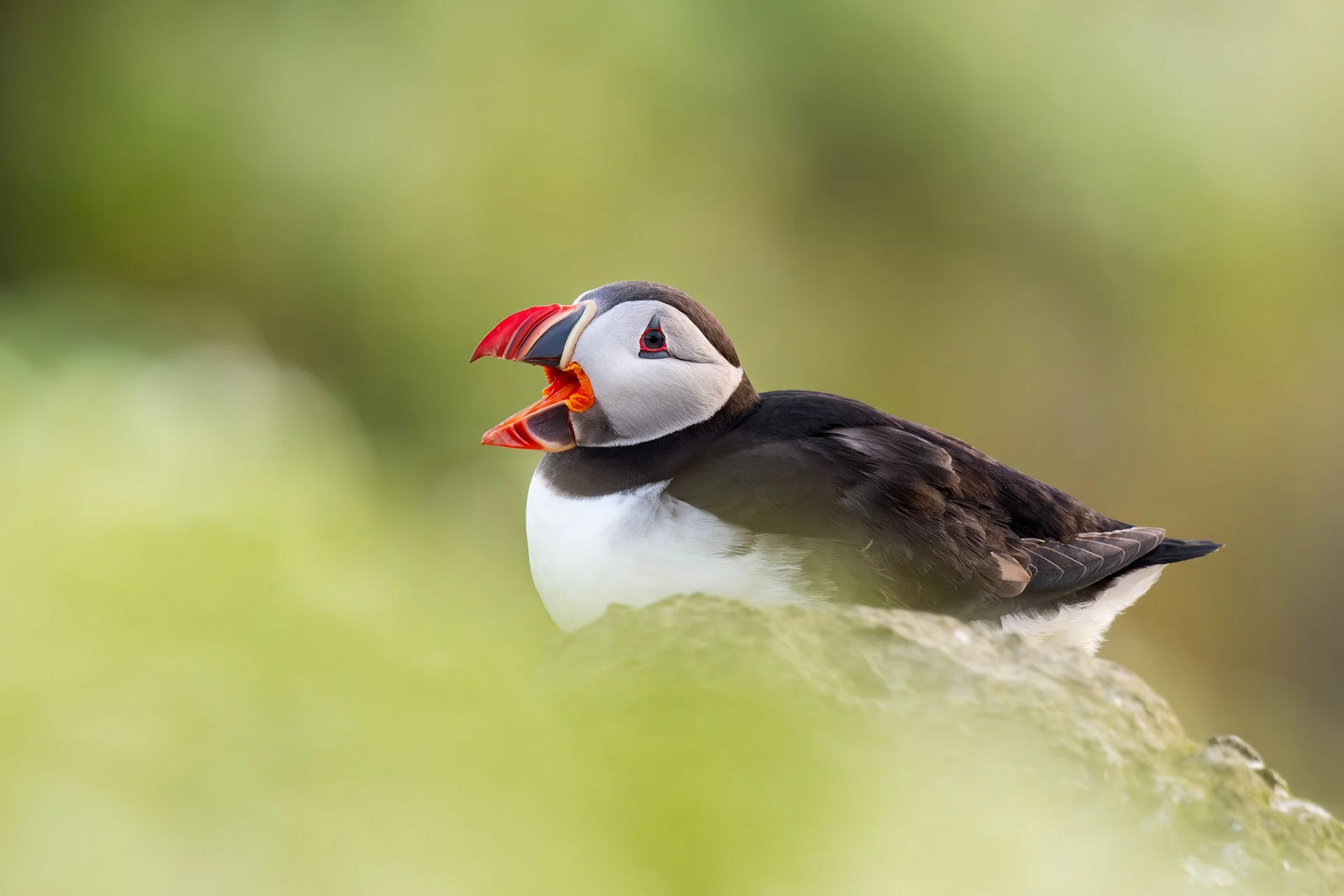 On the small island of Grímsey in Iceland, there is little to do but enjoy nature and its remarkable birdlife. More than two million birds nest on this island of just five square kilometres during the summer, making it an outstanding destination for bird photographers. The main attraction is the vast number of puffins present from April to August. They are mostly found on the steep cliffs, but it is still possible to get close enough for a beautiful portrait like this.