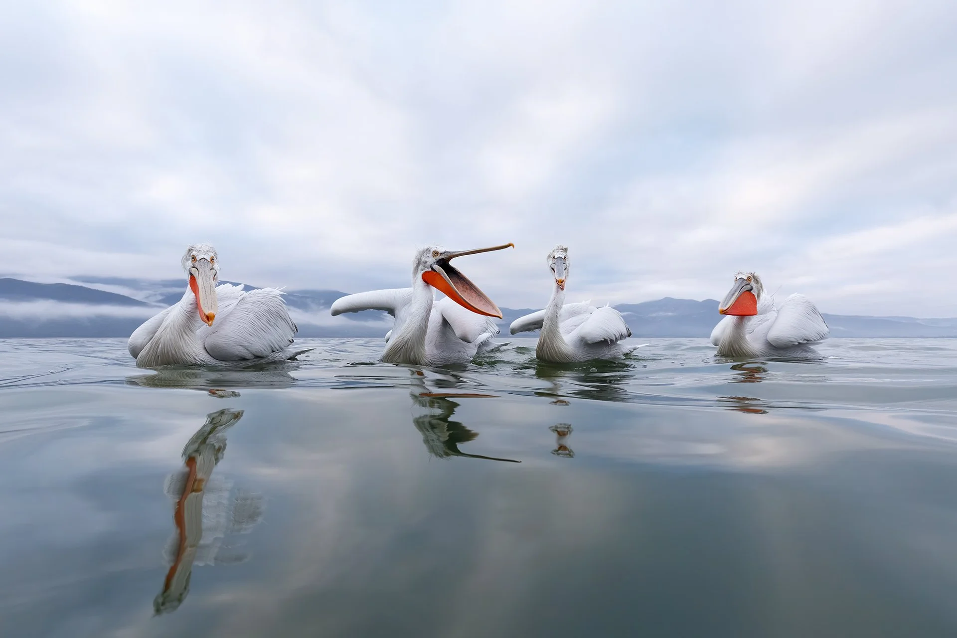 On Lake Kerkini in northern Greece, it is possible to get remarkably close to the impressive Dalmatian pelicans. They often drift alongside the boat, hoping for a fish or two. To capture this image, I leaned over the side of the boat and lowered the camera to the water’s surface. The use of a wide-angle lens creates an unusual and engaging perspective.