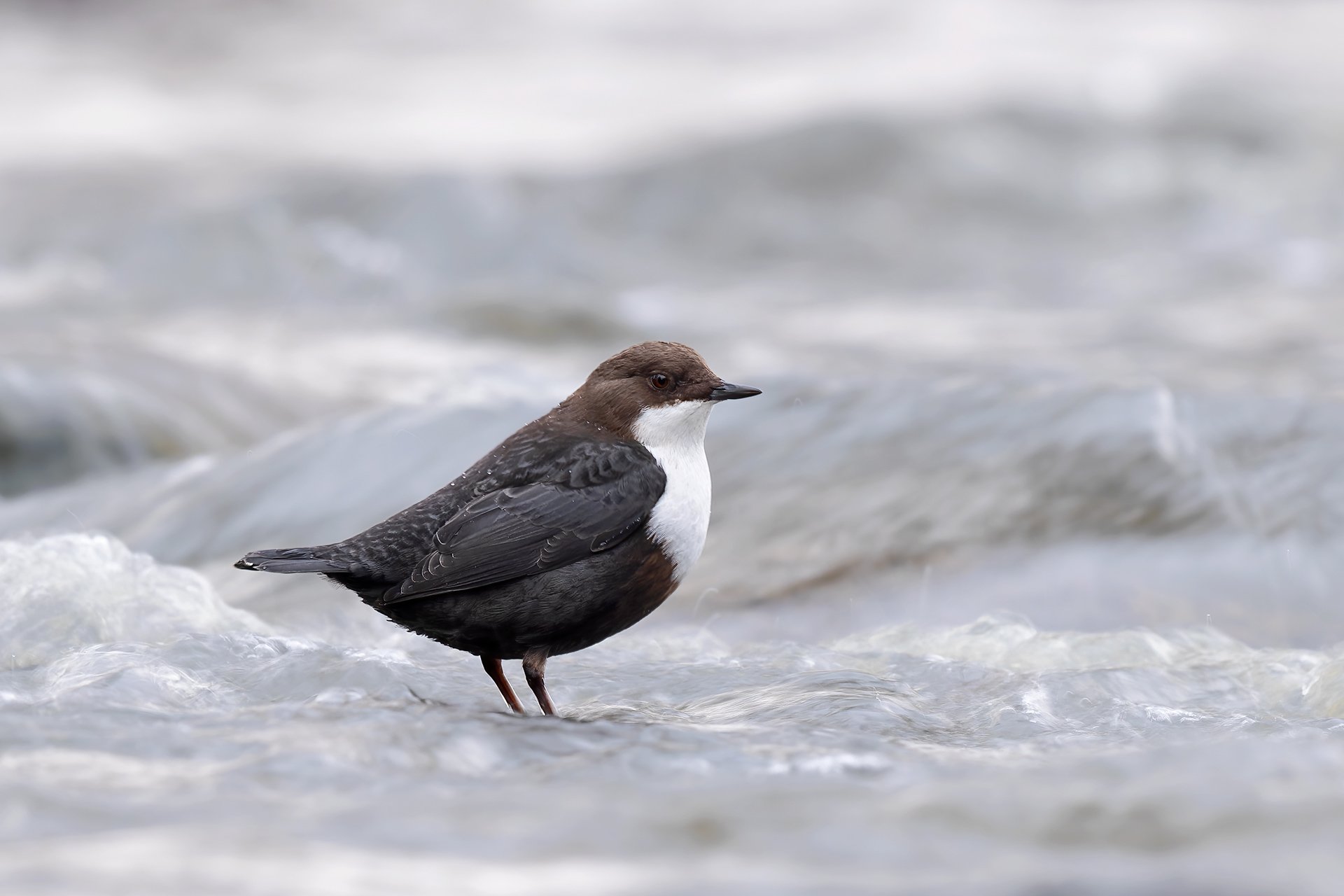 Every winter, I spend time photographing White-throated Dippers. I often sit in the cold water for hours wearing my waders to get to eye level with this stunning little bird. Once, I experimented with a slow shutter speed to smooth out the water, creating a beautiful blurred effect while still keeping the dipper sharp.