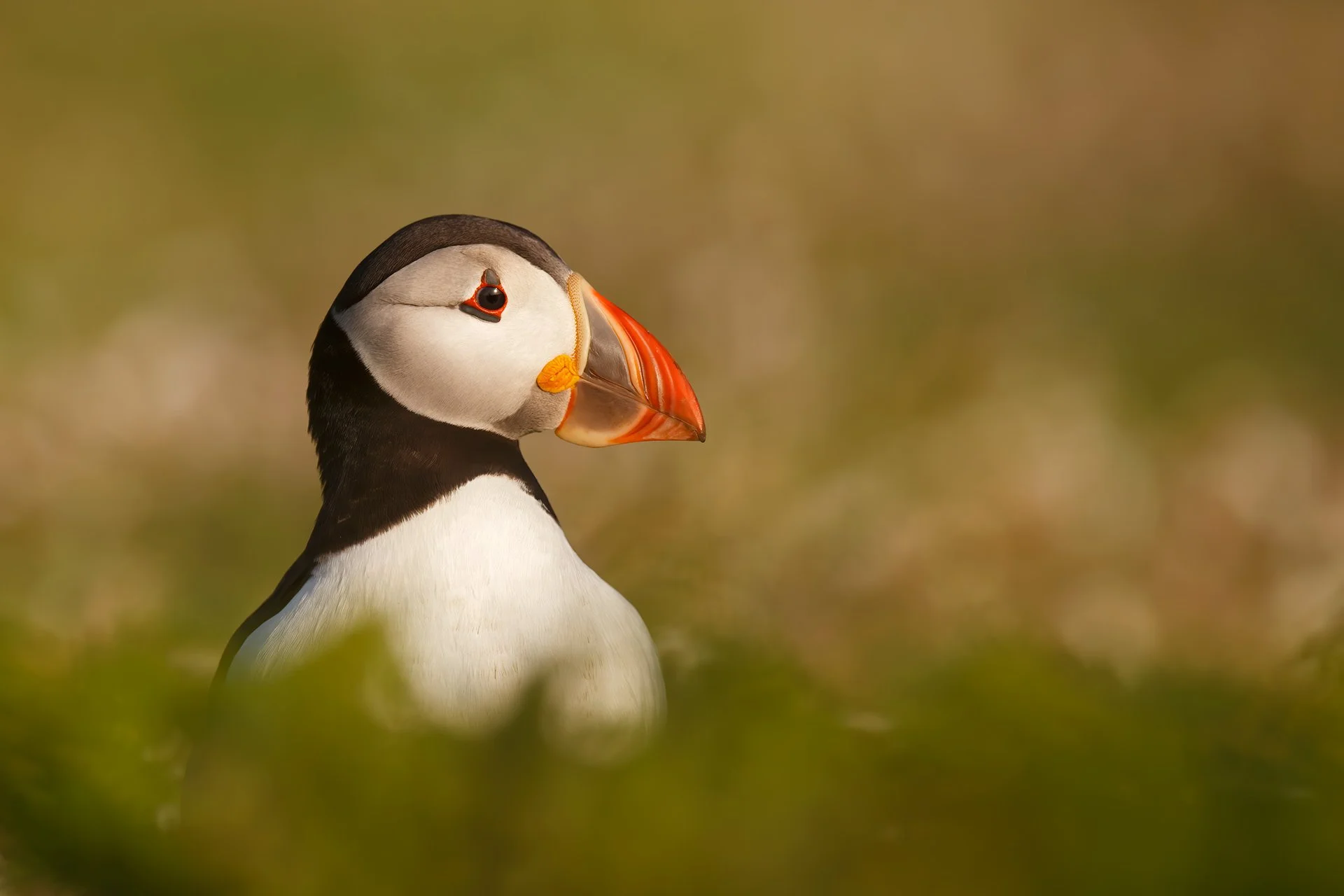 Skomer is a small inhabited island situated less than a mile off the coast of southwestern Wales and is well known for its breeding colonies of Atlantic puffins. I was therefore thrilled to spend three days on the island photographing these adorable, colourful little birds. Most of the time, the weather was overcast with frequent rain, but finally, on the last day, the sun came out in the afternoon and remained until sunset. This gave me the opportunity to capture this puffin portrait in the soft evening light.