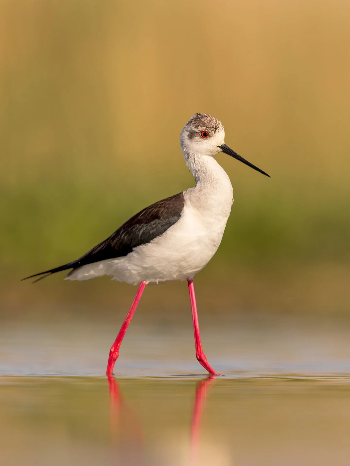 One morning in Hungary this black-winged stilt turned up as a great surprise when I was sitting in a hide photographing herons, black storks and spoonbills. It went into the water of a small lake allowing me to get a nice blurred framing of this charismatic bird with very long and thin red legs.